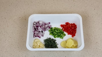 Why use more trays than needed? Simply peel, chop and separate spices and herbs and put them in one tray…